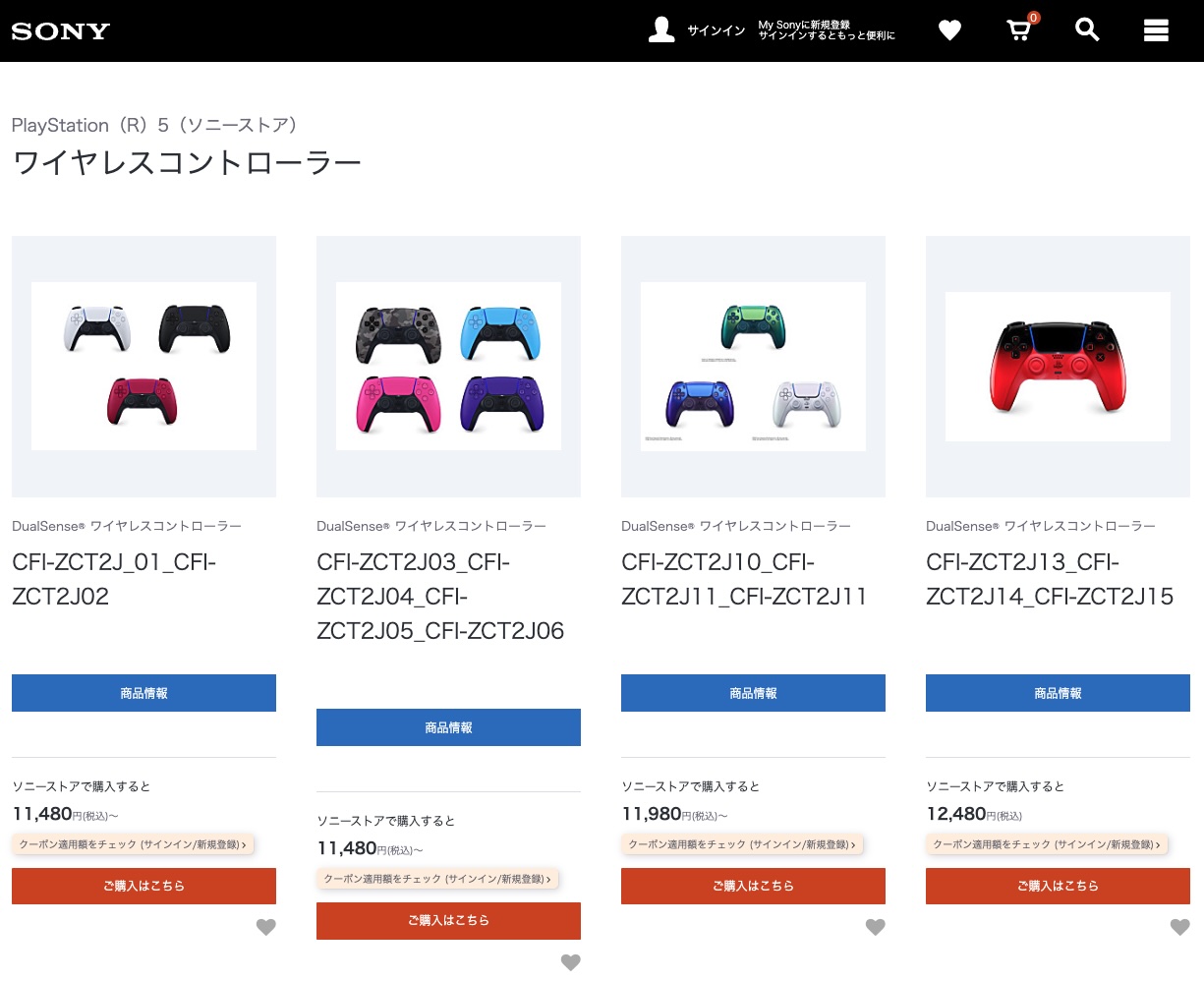 DualSense ワイヤレスコントローラー販売店一覧