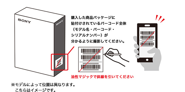 また今回申込時に、パッケージのバーコードに油性マジックで斜線を引く必要がある。
