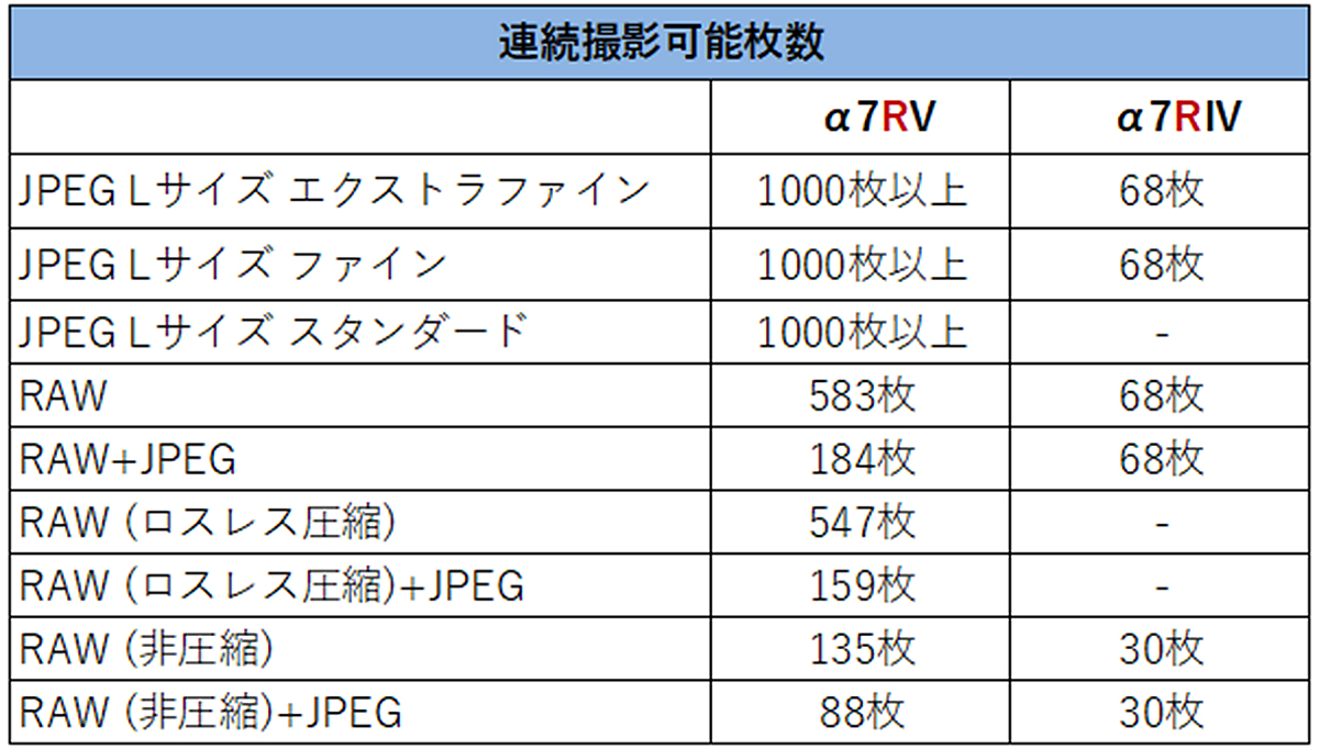 「α7R V」と「α7R IV」の2機種で、連写持続時間と撮影データの書込時間がどれだけ変わったのかを検証してみた。