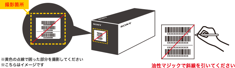 ・対象商品のパッケージのバーコード部分の全体を撮影した画像データ(油性マジックで斜線を引く必要がある)