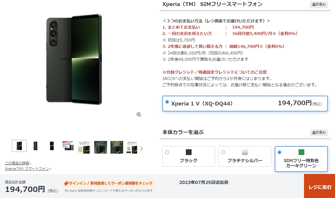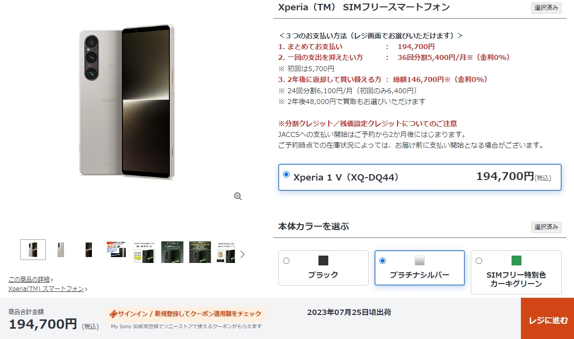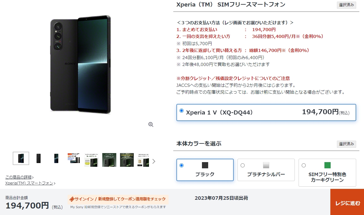 ・SIMフリーモデル「Xperia 1 V(XQ-DQ44)」発売直前 関連商品 ソニーストア納期情報。(7月13日時点)全商品7月中にお届け予定。
