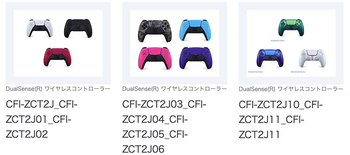ソニーストアで、PlayStation5、PC/Mac、モバイルデバイスに対応するDualSenseワイヤレスコントローラーについて、新型番となる「CFI-ZCT2J」シリーズの販売が開始。