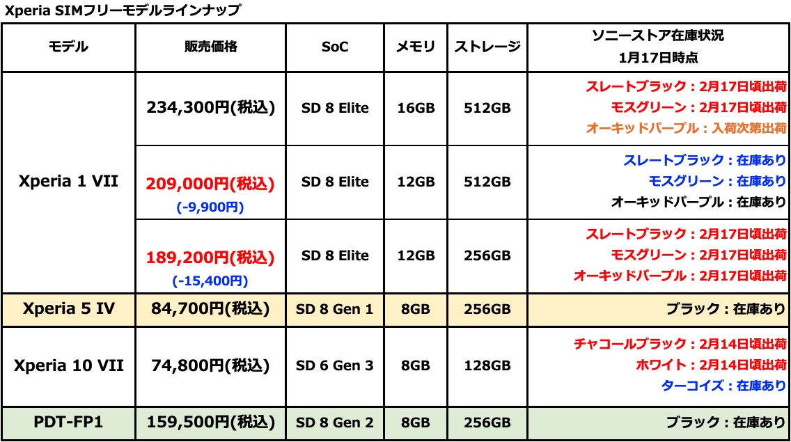 ●Xperia 1 VII / 10 VII 納期、Xperia関連ニュース
