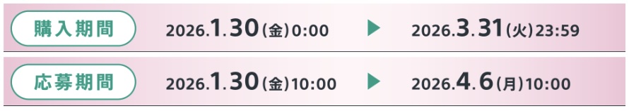 購入期間は、2026年1月30日(金)00:00 ~ 2026年3月31日(火)23:59。