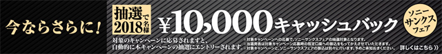 さらに、ソニーサンクスフェアと称して、抽選で2018名に10,000円キャッシュバックが当たる。