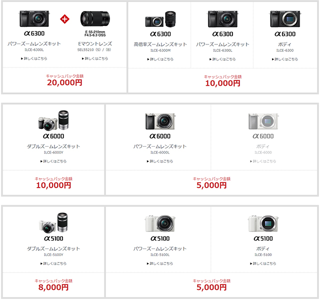 ・デジタル一眼カメラEマウント「α6000 / α5100」の販売価格改定。キャッシュバックキャンペーンを併用するとさらにお買い得に。