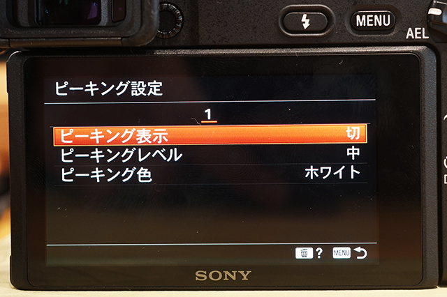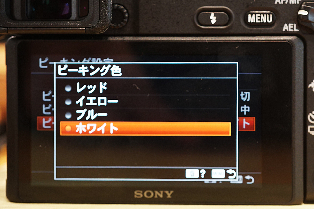 「ピーキング設定」の「ピーキング色」にレッド・イエロー・ホワイトに加えてブルーを追加。