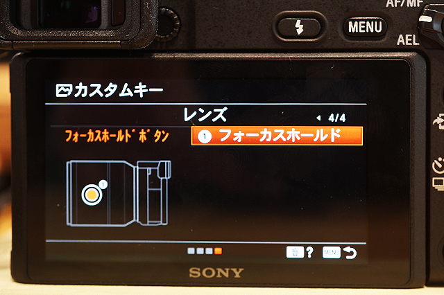 直接ボタンを押して設定を呼び出せる「カスタムキー」は、フォーカスホールドボタン、カスタムボタン1、コントロールリング中央/左/右/下ボタン、AF/MFボタンx2,カスタムボタン2の9つ