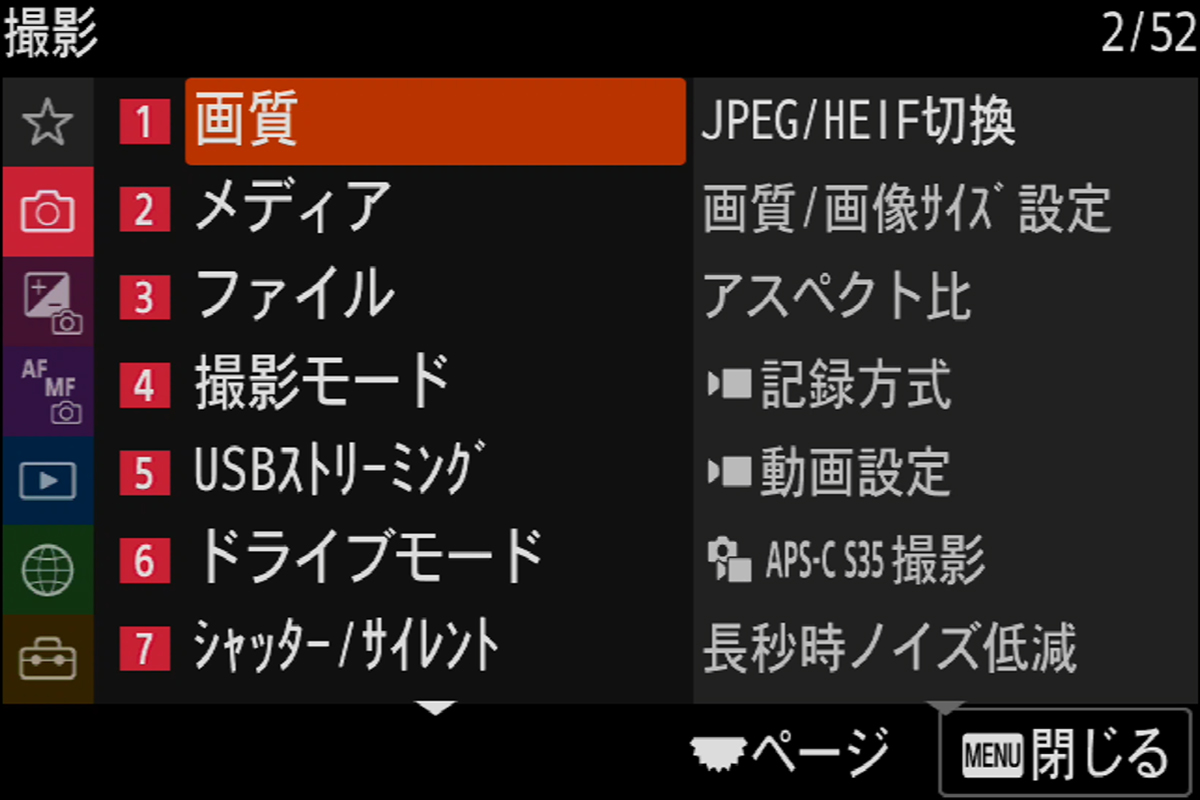 「メニュー」も新しく、α1α7S IIIと同じ新規のものに。