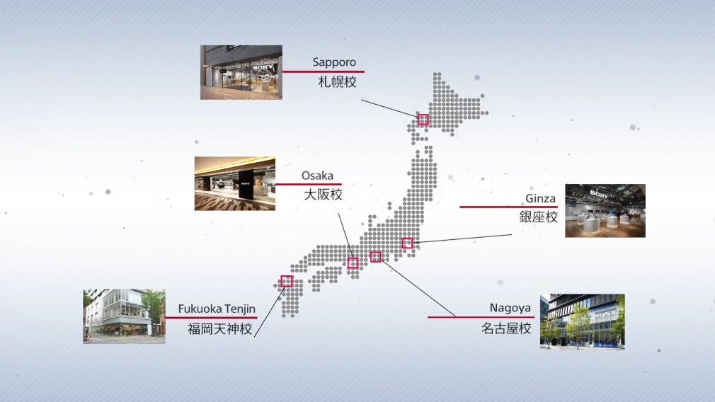 αアカデミー札幌校・銀座校・名古屋校・大阪校・福岡天神校・オンライン校があり自分に合った講座のスタイルで受講することができる。