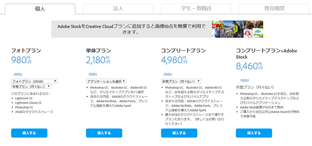 2019年2月初旬から「Adobe Creative Cloud」価格改定。ただし学生・教職員向けプランやCreative Cloudフォトプランなどの価格改定はない模様。