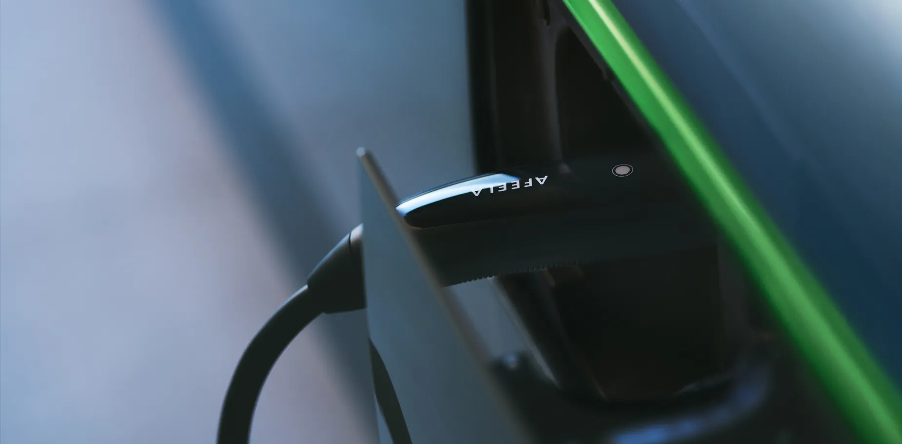 充電器にはAFEELAロゴが使われた黒いコネクタが確認できる。