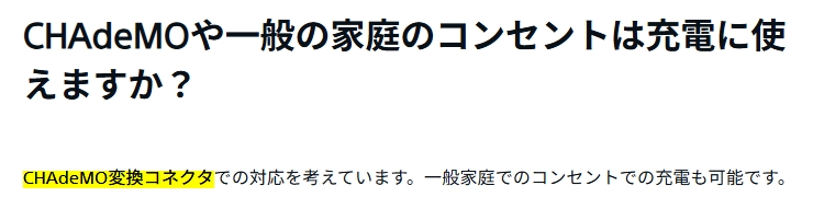 CHAdeMOや一般の家庭のコンセントは充電に使えますか?