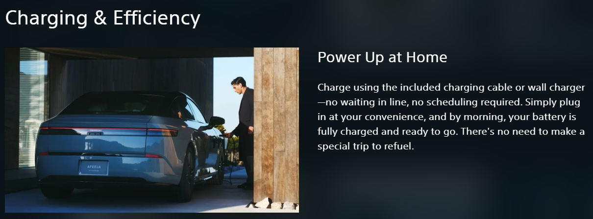 充電機器については、充電用コンセントにさすモバイルコネクターや、自宅用のウォールコネクタがテスラからも販売されているため、おそらく似たような製品がAFEELA純正として販売されると思われる。