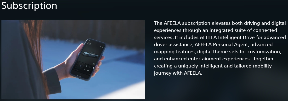 AFEELA向けのサブスクリプションサービスも提供される模様。