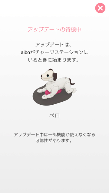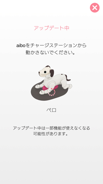 「My aibo」アプリにアップデート中という出ている間はひたすら放置。(アップデート中にアプリは閉じても大丈夫。)