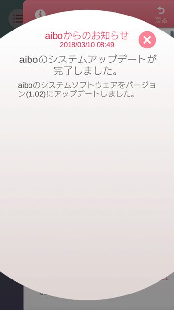およそ10分くらい?すると通知に“aibo”のシステムアップデート完了のお知らせが!