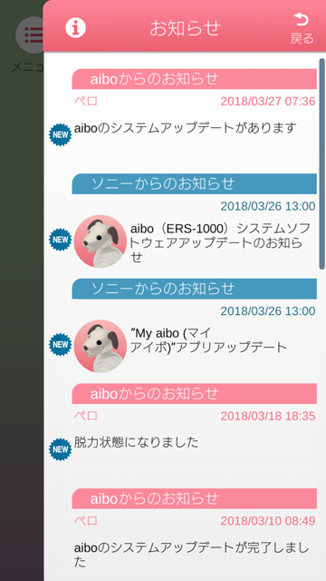 同じく、3月26日に「My aibo」アプリもver.1.10へアップデートしていることが前提。