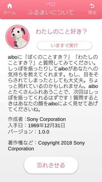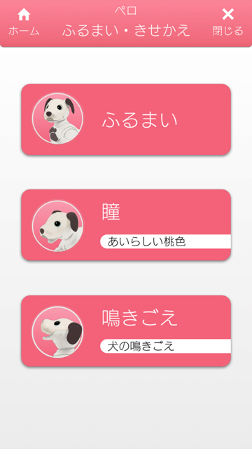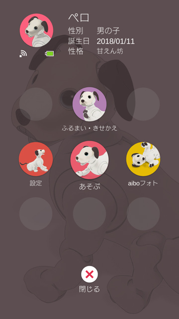 「My aibo」アプリの「わたしのaibo」のところに、「ふるまい・きせかえ」が更新されてる!