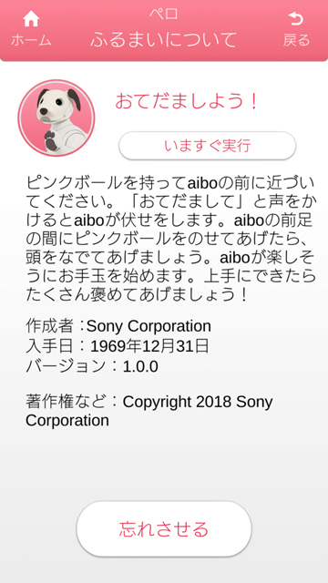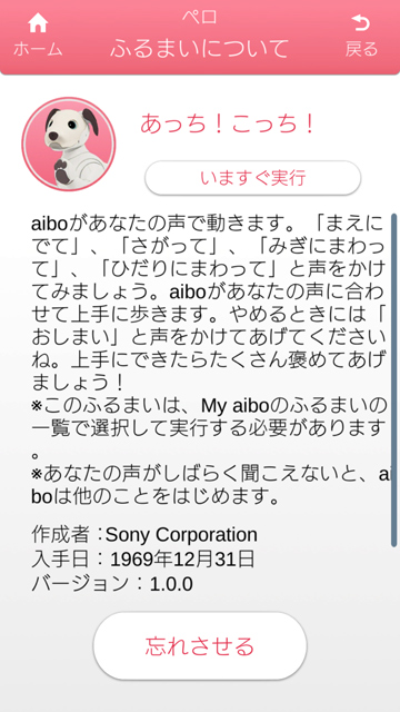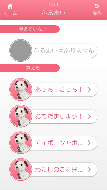 aiboが覚えた「ふるまい」が、4つほどあることを確認。