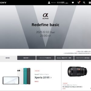 ソニー デジタル一眼カメラα新製品を、2025年12月2日(火)23時に発表。「Redefine basic」(ベーシックを再定義する)