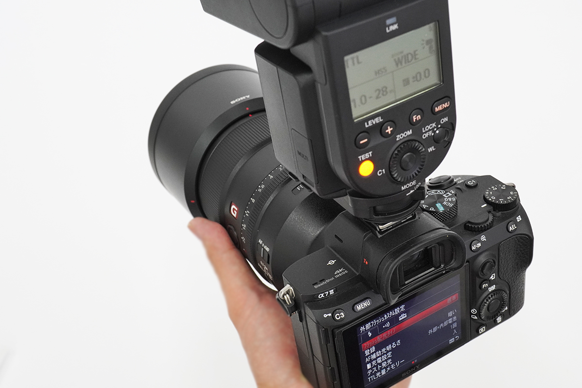 デジタル一眼カメラα7R IV / α7RIII / α7III の3モデルのアップデートを行うことで、外部フラッシュ設定機能が加わる。