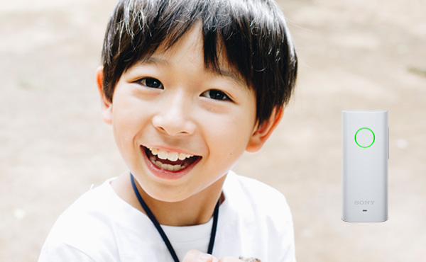 ソニーのセンシングと通信技術によりおまもりのような端末。