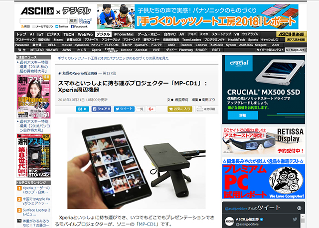 [ ASCII.jp x デジタル 掲載 ] スマホといっしょに持ち運ぶプロジェクター「MP-CD1」:Xperia周辺機器