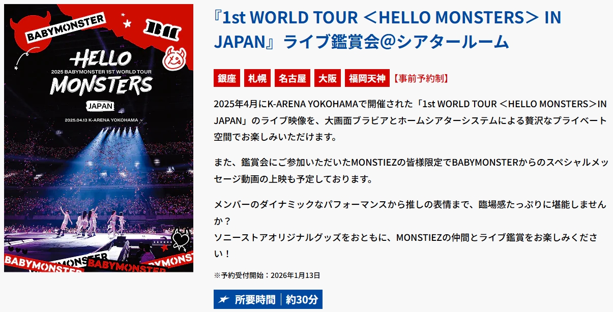 ③『1st WORLD TOUR <HELLO MONSTERS> IN JAPAN』ライブ鑑賞会@シアタールーム【事前予約制】