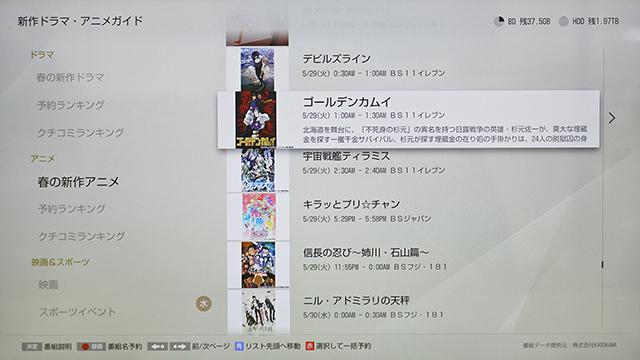 ブルーレイディスクレコーダー「BDZ-FT2000」を使ってみたレビュー(その1)。前モデルよりレスポンス向上、最長1ヶ月前から先行予約できる「新作ドラマ・アニメガイド」。