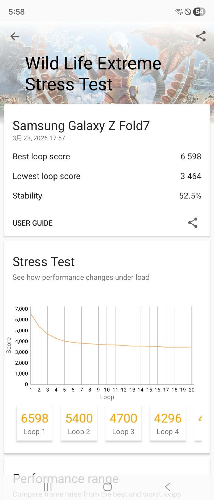 Galaxy Z Fold7スコア推移(正規ストア版)