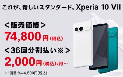 XPERIA SIMフリーモデル「Xperia 10 VII (XQ-FE44)」74,800円(税込)。ソニーストアでお得に購入する方法、支払方法(分割クレジット、残価設定クレジットなど)を解説。 2025.10.02