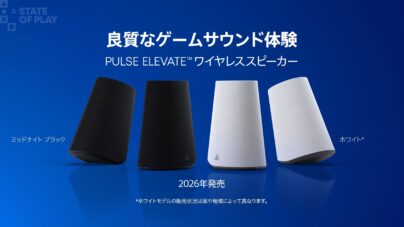 PlayStation PC他 パソコン ゲーム SIEが、PC・Macにも使えるPS5 デスクトップゲーミング用ワイヤレススピーカー「Pulse Elevate ワイヤレススピーカー」を発表。2026年発売予定、PSLink・平面磁界型ドライバーを採用。 2025.09.25