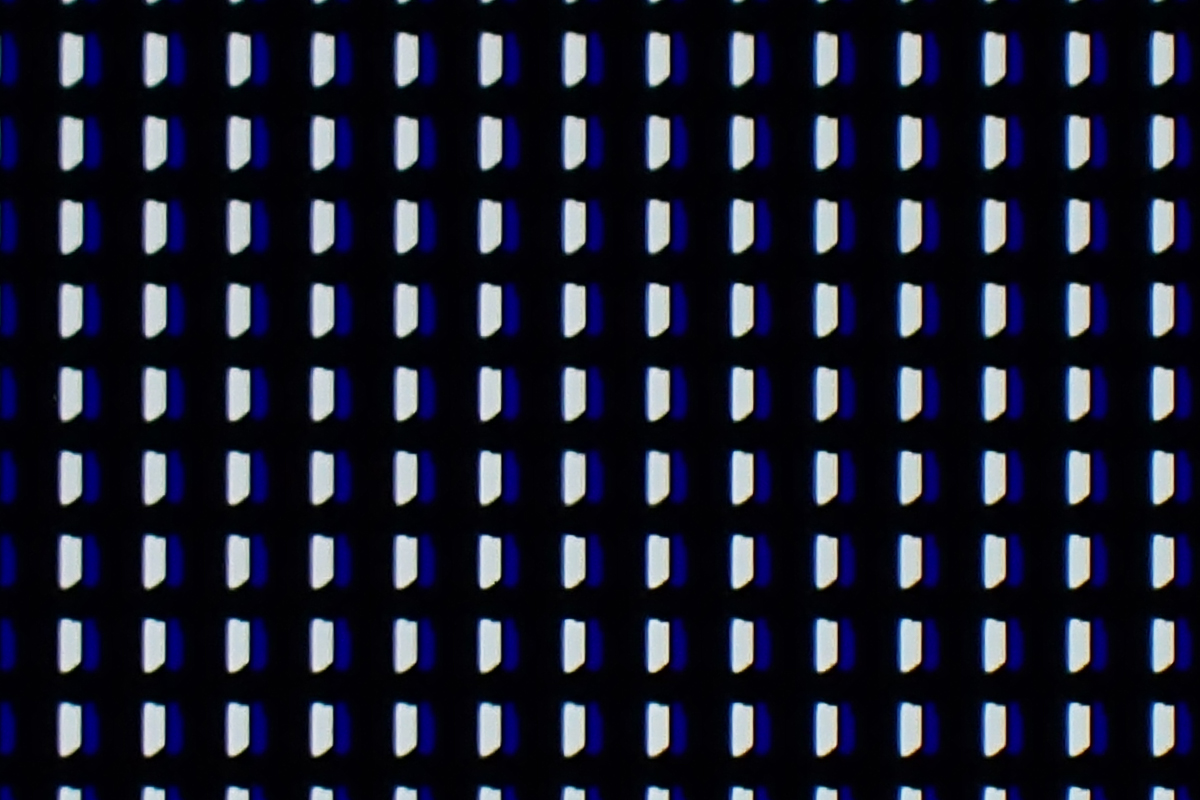 WOLEDの有機ELテレビでは4色が同時に点灯することはないため、2パターンのサブピクセルの点灯している様子を拡大してみた。