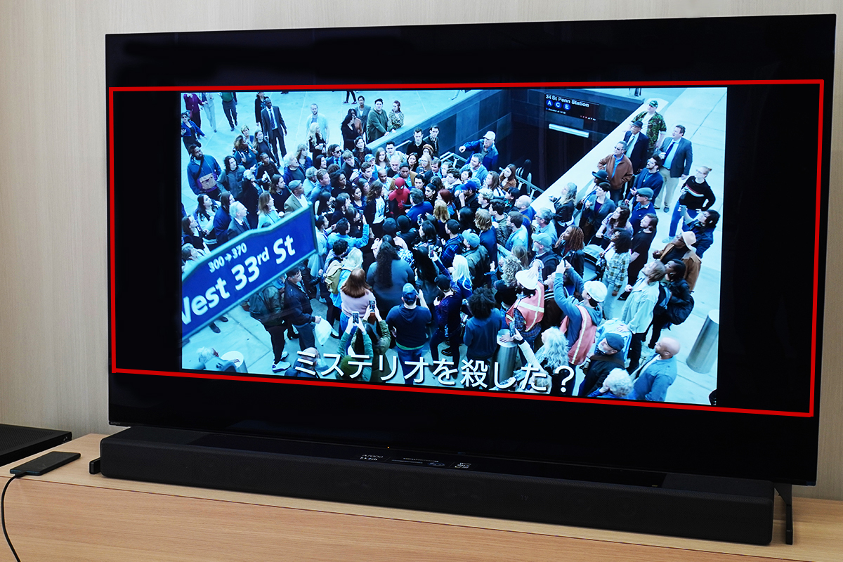「BRAVIA CORE」でコンテンツを再生してみると、ミラーリングとデスクトップモードどちらもほぼ画面に黒帯が発生しない状態で表示された。