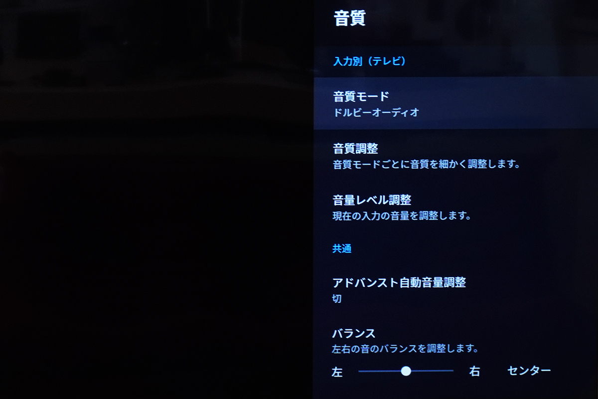 [音質モード]を確認すると、[ドルビーオーディオ]に変わっているのがわかる。