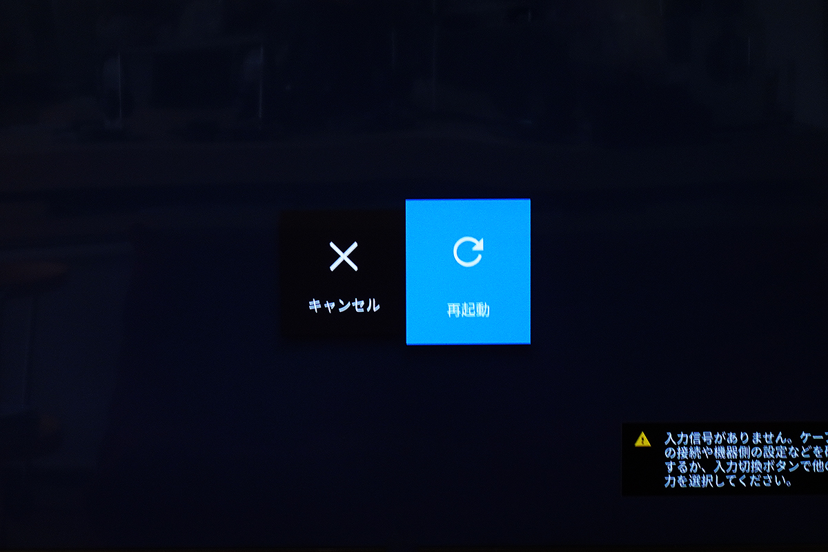 リモコンの電源ボタンで再起動メニューを表示更。