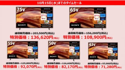 ブラビア TV・レコーダー SONY 4K液晶テレビ ブラビア BRAVIA X75WLシリーズ全モデル【75~43型】、ソニーストアのタイムセールで最大51,700円大幅値下げ!クーポンやお買い物券併用で43型は7万円以下で購入も可能。2025年10月15日(水)まで。 2025.10.03
