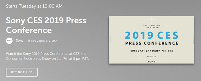 開幕に先立っておこなわれる主要メーカーのプレスカンファレンスのなか、現地時間1月7日夕方5時、日本時間にすると1月8日(火)午前10時から、ソニーのプレスカンファレンスが行われる模様。