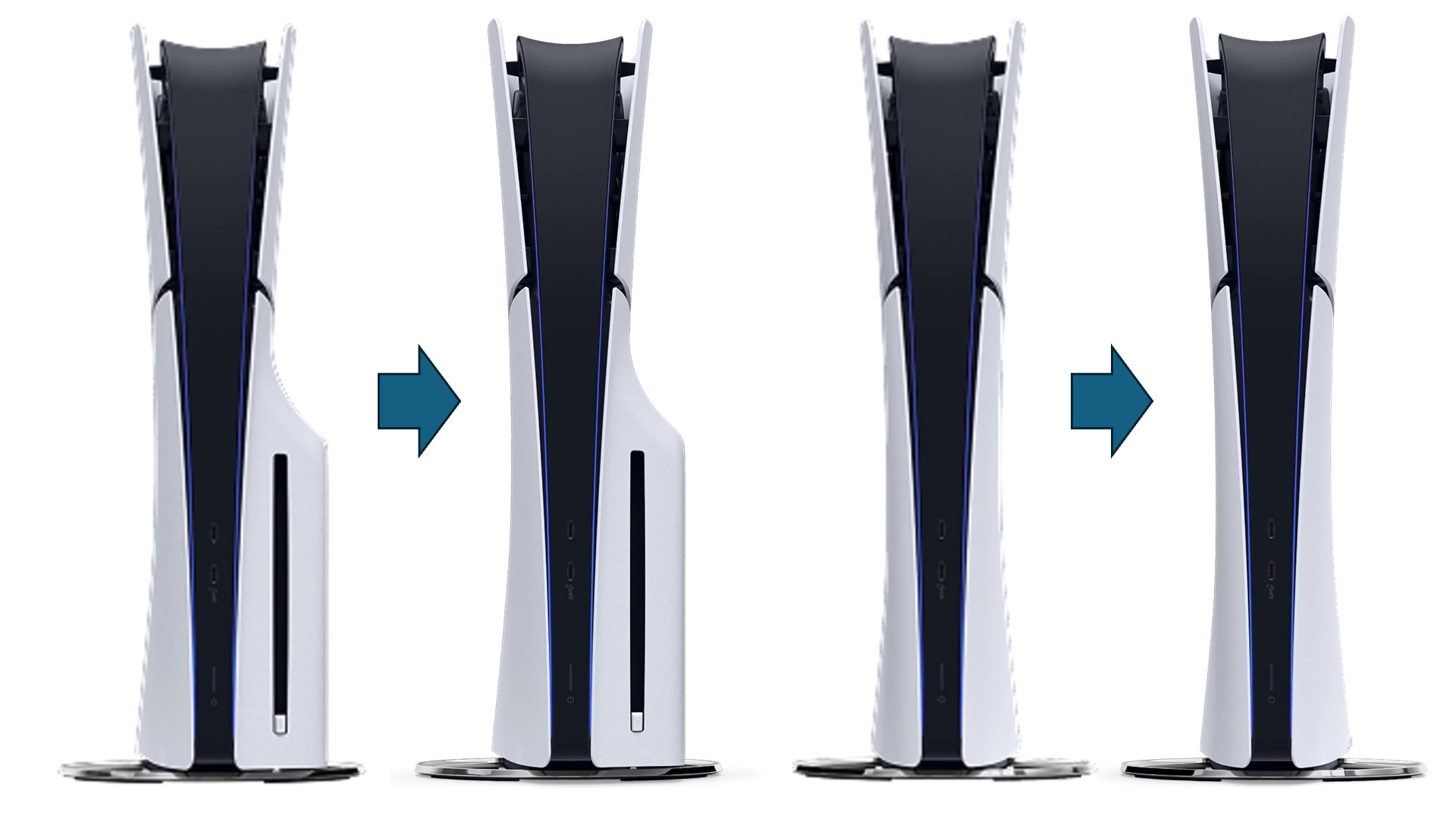 PS5 Slim新型番「CFI-2100」(CFI-2116)の製品画像が、海外通販サイトに掲載。ストレージ容量が初代PlayStation5と同じ825GBに減少、上側の本体パネルが非光沢化?
