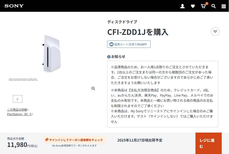 ただ1つ心配になるのは、ディスクドライブ CFI-ZDD1Jの需要が高まることで、こちらの供給が追い付くのか?