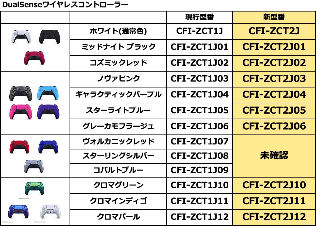 PlayStation5 DualSenseワイヤレスコントローラー新型番”CFI-ZCT2J”の各カラーバリーエーションが販売開始。