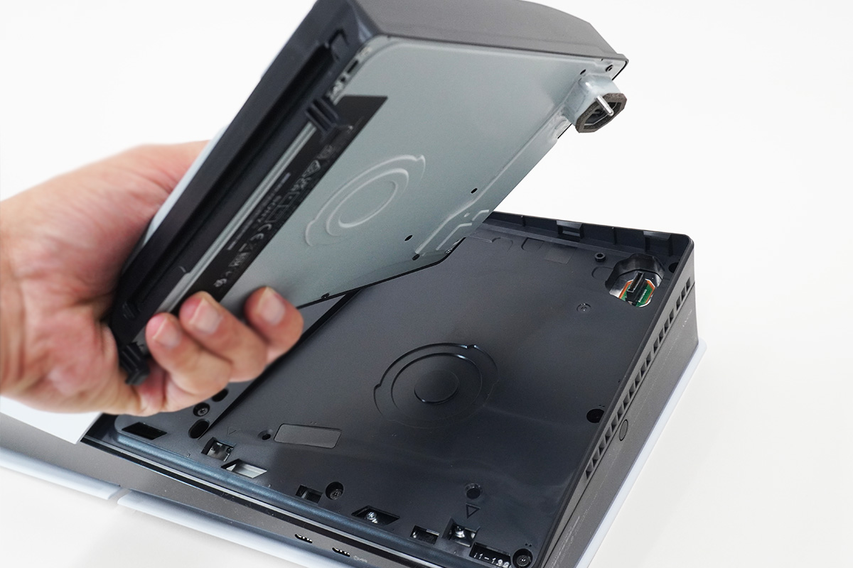 特にネジ止めなどもされていなくて、光学ディスクドライブのくぼみに、指をかけて持ち上げれば簡単に取り外しできる。