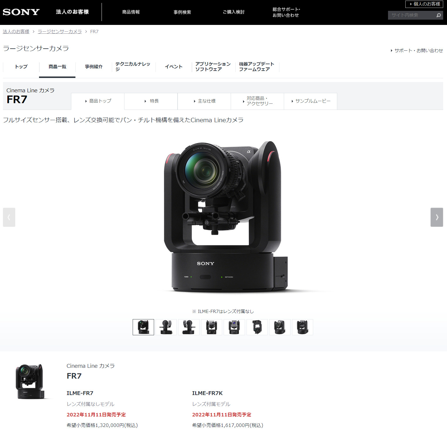 フルサイズセンサー搭載、レンズ交換可能でパン・チルト機構を備えたCinema Lineカメラ「FR7」を発表。2022年11月11日発売予定、法人向けで希望小売価格1,320,000円(税込)。