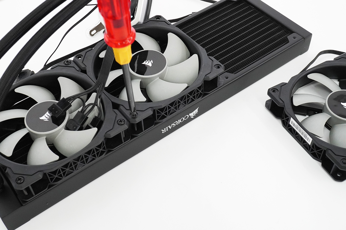 ひとまず冷却ファンユニットをラジエーターにネジ4つでそれぞれ3基固定。