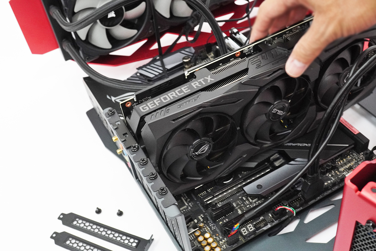 バスインターフェースPCI-Express 4.0 とグラフィックボードの設置位置を確認しつつ、1番上は残しておいて、2・3番目を取り外しておけばOK