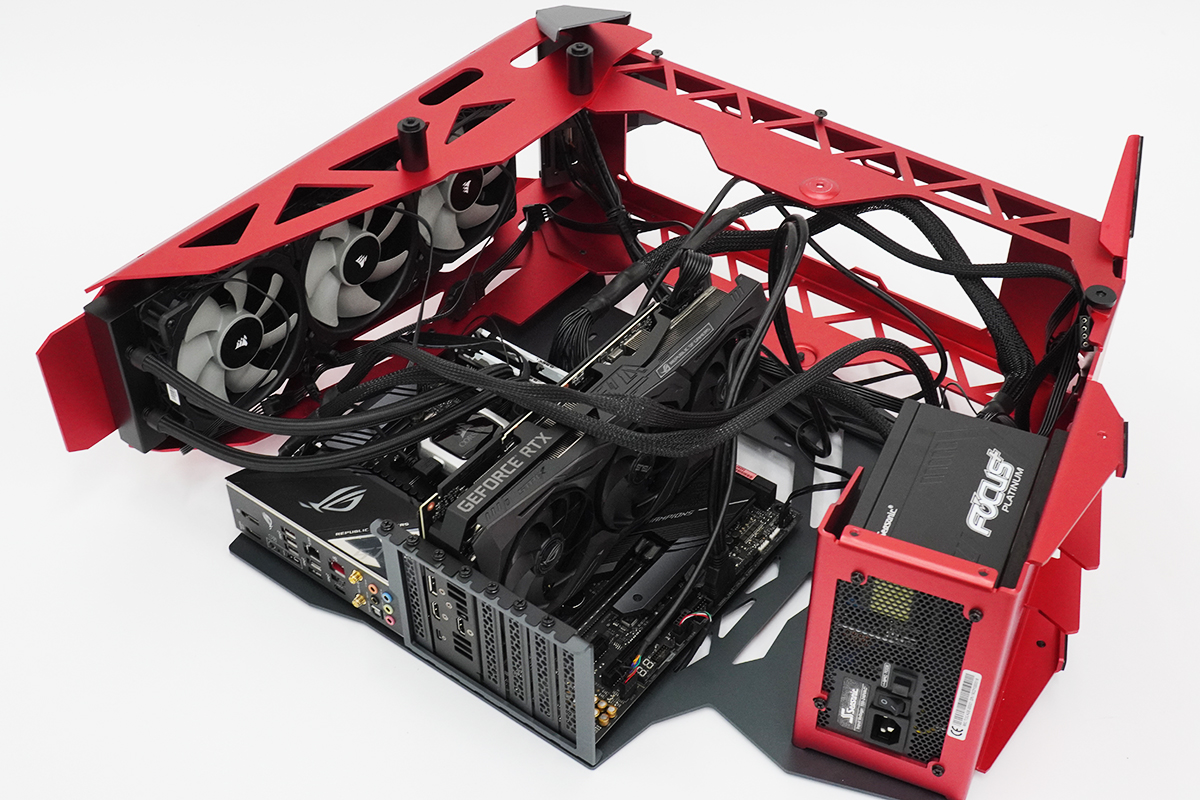 オープンPCケースは作業めちゃくちゃやりやすいのは良いけど、オープンすぎて配線を隠すところがほとんどないのがやっかい。