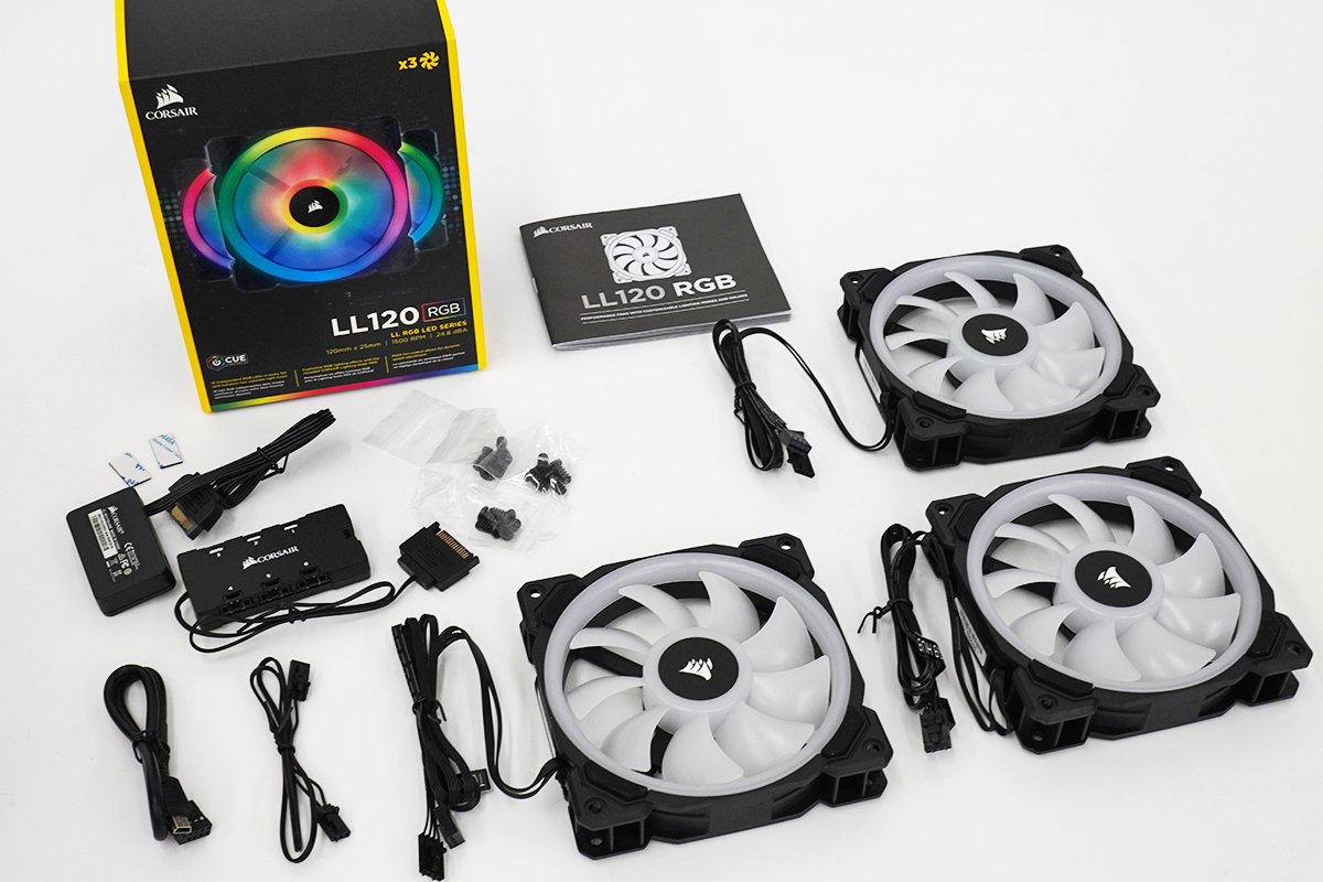ということで、RGBを搭載した120mmのPCケースファン3つがセットになった「Corsair LL120 RGB 3Fan Pack with Lighting Node PRO」 を買ってみた。