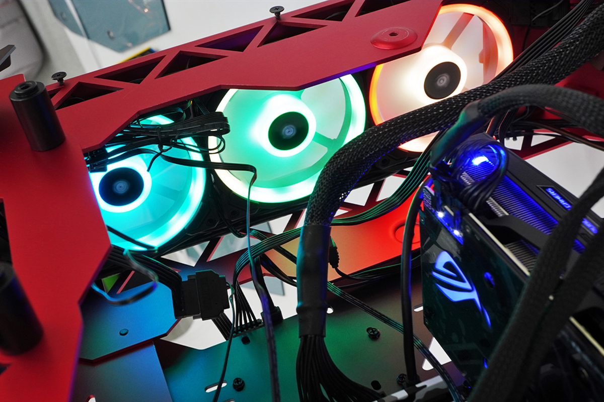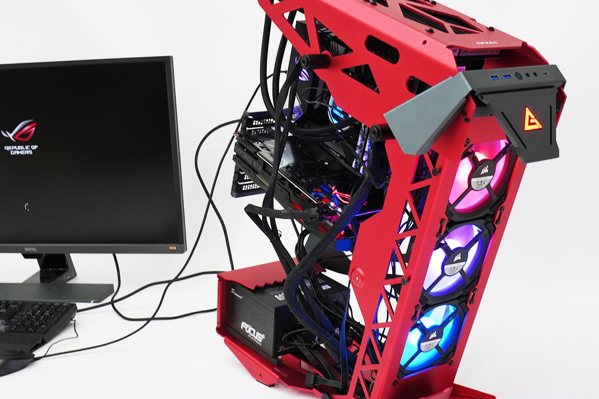 PCケース自体がフルオープン状態だし熱がこもることなんてないんだけれども、ちょっとくらいは効果があるかもしれないし、見た目にカッコよかったらそれでいいのである。