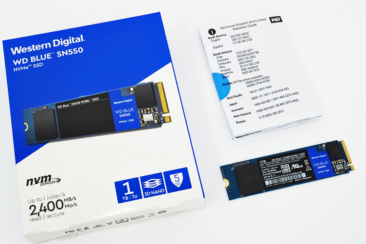 マザーボードのもう一個のアキスロットにくっつけたのが、NVMe規格のPCIe Gen3 x4 に対応した「Western Digital SSD 1TB WD Blue SN550」。
